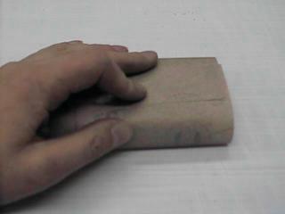 Es kann aber auch so ein Stück Holz als Schleifklotz dienen, in dem man ihn mit Schleifpapier umwickelt.