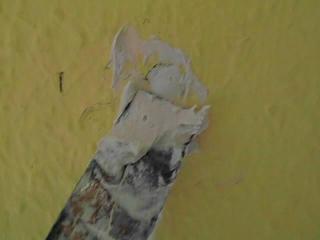 Hier in unseren Fall soll eine Rauhfaser gestrichen werden, ein nicht mehr benötigter Hacken soll entfernt werden und das entstehende Loch mit einer Spachtelmasse verschlossen werden.