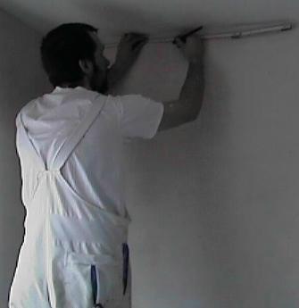 Die erste Bahn die man auf die Wand klebt muss gelotet werden. Dabei wird mit Hilfe eines Zollstocks erst die Breite der geweichten Bahn vermessen.Dann wird von der Ecke Oben auf der Wand die Breite der Bahn angezeichnet.