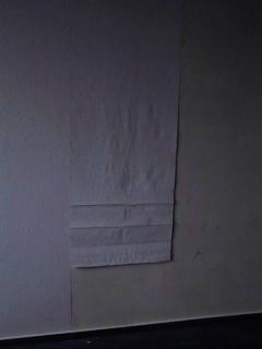 An der Markierung wird dann das Seil des Lotes gehalten. Wenn das Lot ausgependelt hat, wird mit Hilfe eines Bleistifts auf der Wand ein Strich entlang des Seiles gemacht.